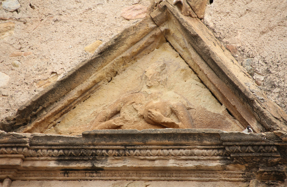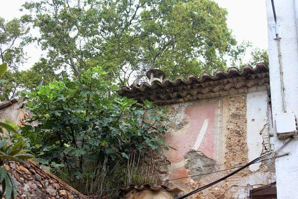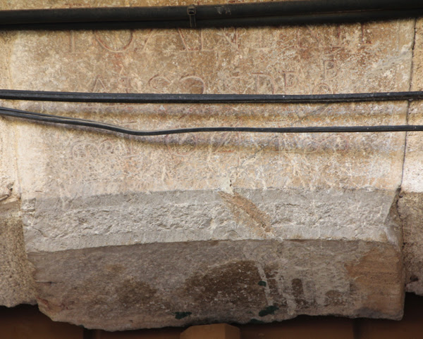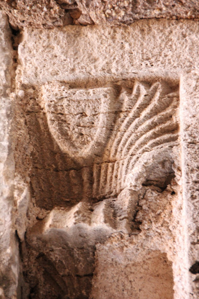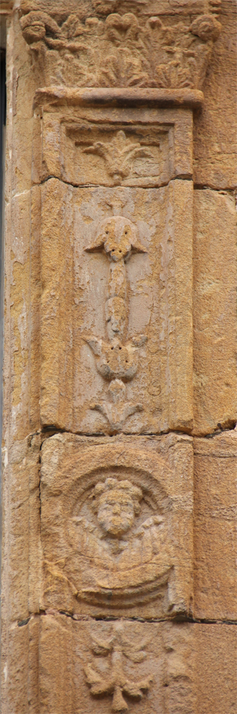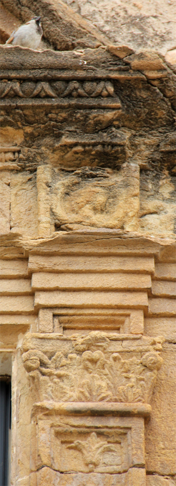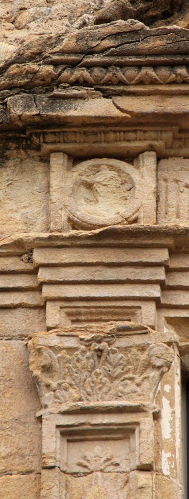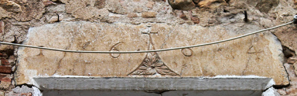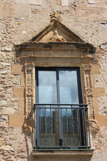 A la llinda de la finestra hi ha una inscripció molt deteriorada: < IHS (o NS) ? ANTICR …… VTR ….. > el seu estat fa molt difícil de poder-ne fer una transcripció fiable. Tampoc sabem si la decoració que emmarca el finestral té alguna simbologia.