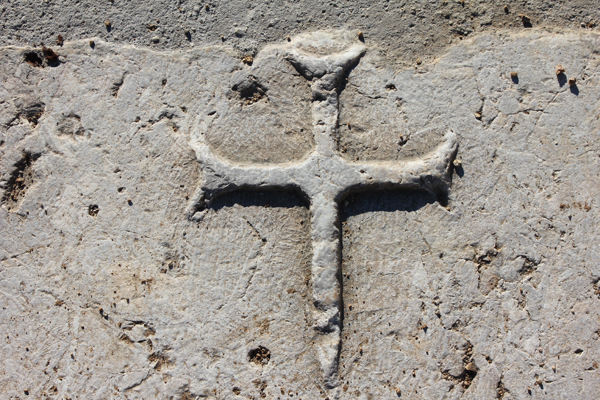 Els primers traços del gravat tant podrien representar l’anagrama IHS (Jesús) com la abreviació NS (nostra senyora)