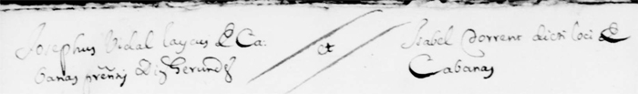 Certifico lo baix firmat domer sobre la instruccio de la tras pagina, que Joseph Vidal y Isabel Torrent de Cabanas han observat lo seguent
