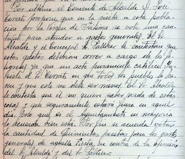 Aquells anys a l’escola es cantava l’himne de la Verge de Fàtima: El tretze de maig la Verge Maria baixà des del cel a Cova d’Iria. Ave, Ave, Ave Maria ….