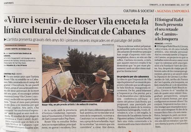- Viure i sentir. Roser Vila. Exposició d’olis i gravats. Sala “El Sindicat”. Cabanes, 2017