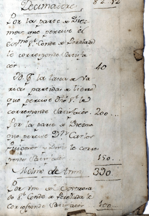 Al Cadastre de Cabanes de l’any 1779 hi consta el tribut que han de pagar el comte de Peralada i Carles Puiggener d’Orís, pels delmes i tasques que cobren.