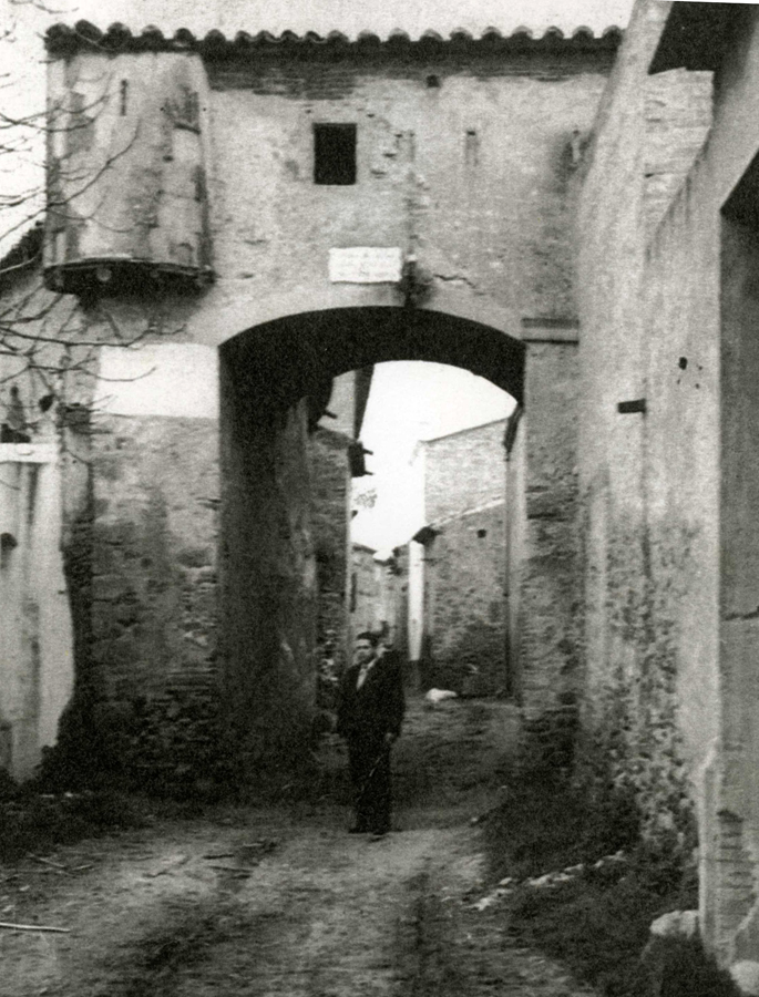 - 1958, 26 d’abril. … Igualmente se da cuenta de la petición formulada por los consortes D. Amadeo Recasens [Socias] y Da Maria Noguera [Serrats] en súplica de cambio de alineación de la casa o finca de su propiedad, de la calle Escudillers o Reverendos mártires, immediata al “porchu” de la entrada de la población, por la parte del cementerio, conforme al croquis adjunto, lo que tiende a hacer desaparecer el ángulo recto o rinconcito existente, logrando con ello una perfecta línea recta de la fachada de su edificio, donde proyectan reconstruir una o dos viviendas, conforme al proyecto que someterán a la aprobación de esta Corporación, cediendo ello, a cambio de la pequeña ocupación de via o espacio libre, el derribo del “porchu” que en varias ocasiones se les había interesado; derribo que corre de cuenta y riesgo del Ayuntamiento … Se acuerda: aceptar la propuesta de alineación de la casa nº 1 de la calle Escudillers … Aceptar la oferta de cesión del “porchu” o “portal” de entrada a la población, que antiguamente fue puerta de la muralla de la localidad, previo derribo, a fin de facilitar el transito de los carros y vehículos en general con carga de alfalfa u otros productos agrícolas … Correrá de exclusiva cuenta del Ayuntamiento el derribo del “porchu o portal” para lo cual oportunamente se contratará el personal oportuno y el traslado de piedras y demás materiales existentes.