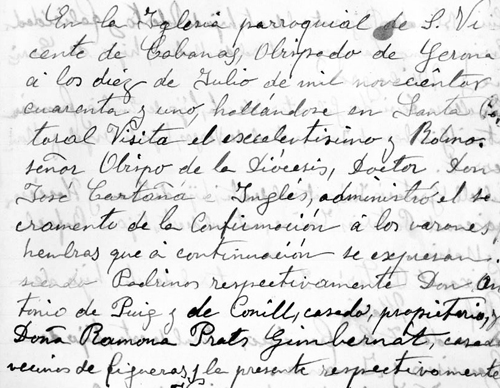 - 1307.- Trasllat (28 d’abril 1316) de l’establiment emfitèutic que fa Fra Pere sa Riera, procurador del Convent del Sant Sepulcre de Peralada, a Pere sa Mata, de Cabanes, d’una terra situada al cortal de Guerau Tortós, a la parròquia de Peralada. El document original ha estat redactat pel notari Pere Teixidor, notari de Cabanes (18 maig 1307). El trasllat (28 abril 1316) ha estat escrit i tancat per Jaume Barraca, notari de Peralada (1295-1322)