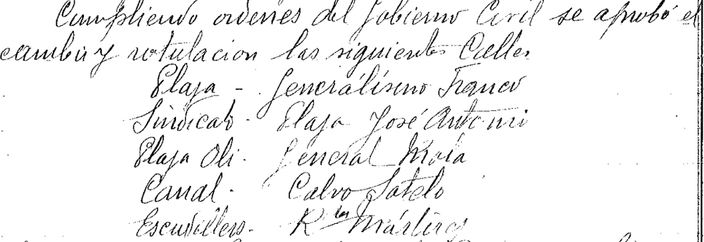 Una vegada acabada la Guerra Civil es van tornar a modificar els noms d’alguns carrers. El Ple municipal del 2 de juliol de 1939 va aprobar aquests canvis: