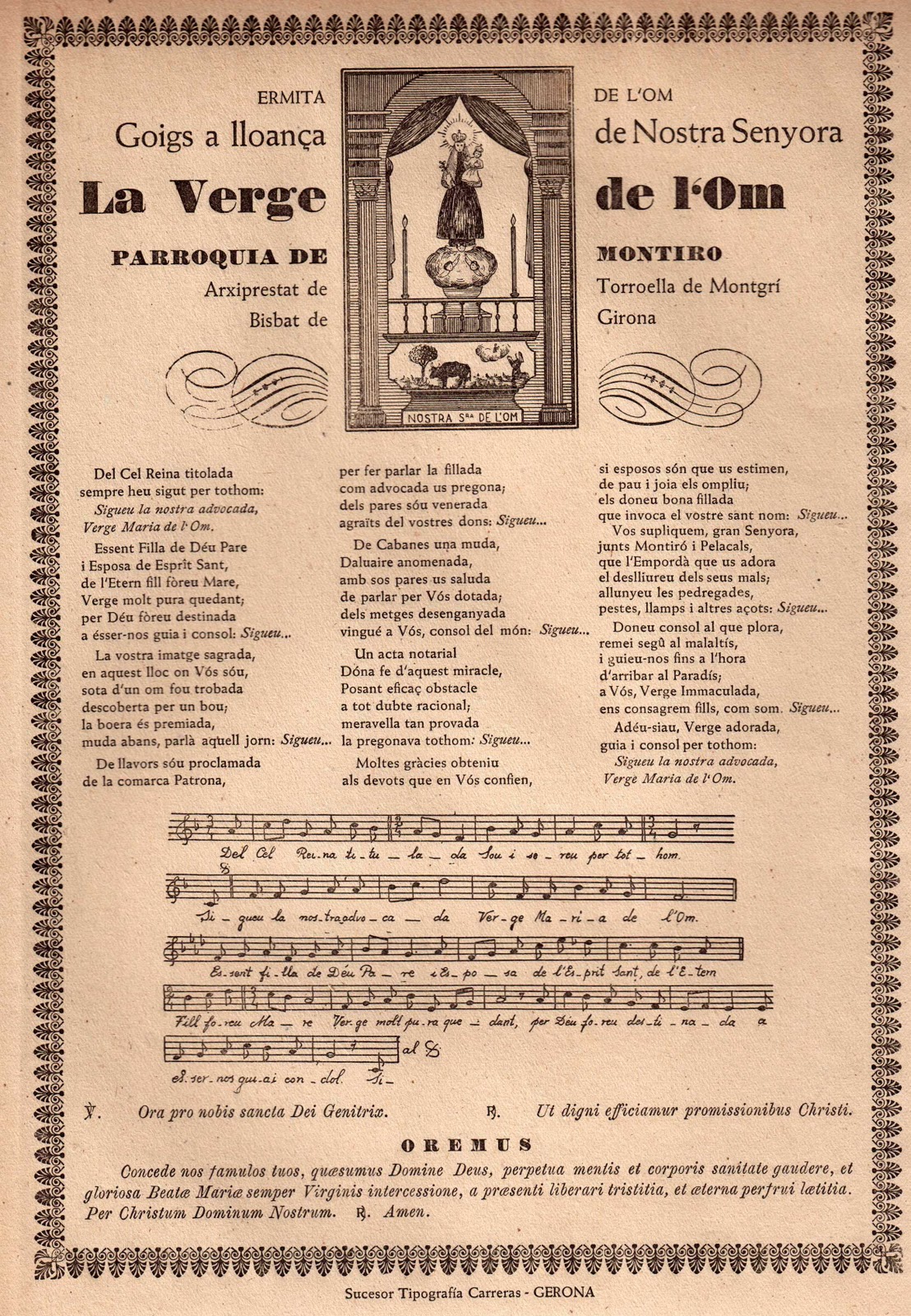 A: Caussa Sunyer, Jaime. El Santuari de la Mare de Déu de l’Om, patrona de l’Empordà i advocada del bell parlar. Annals de l’Institut d’Estudis Empordanesos, 1 (1959) Pàg. 178