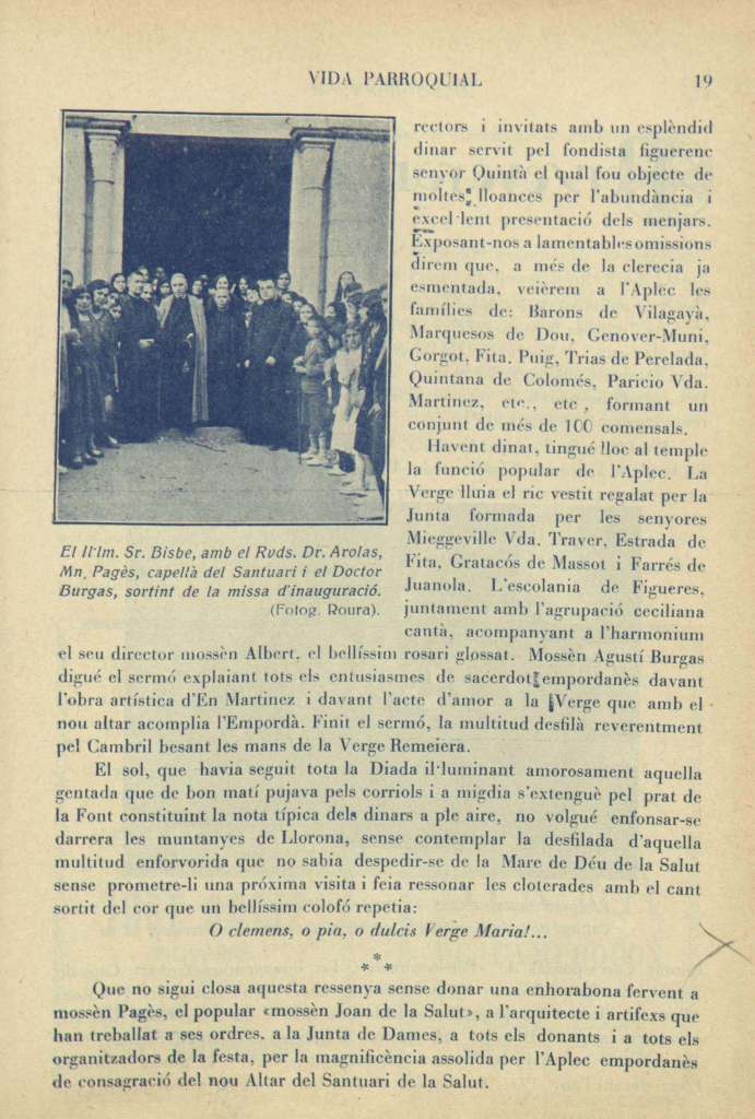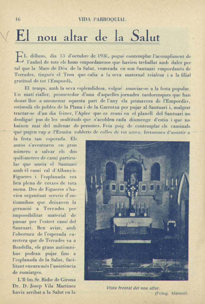 El nou altar de la salut Vida Parroquial portaveu mesal del Patronal de la Catequística de Figueres, 12/1930