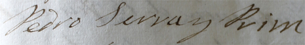 Matrimoni se ha cuncurdat entra jo Pere Serra y Prim y Matdalena Mallol y Giral filla tambe del pobla de Cabanas encuntranma jo Pera en edats de 28 añs y la Matdalena en edats de 24 cumplits en 11 de febrer hultims y esta funsiho fou al dia 23 de 7bra de 1848.