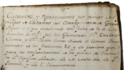 - Catastro del lugar y término de Cabanas del Corregimiento de Gerona (1779) Arxiu Comarcal de l’Alt Empordà (ACAE110114-T1-317)