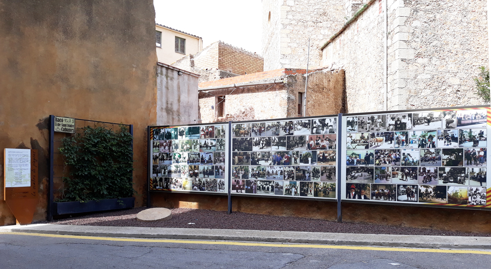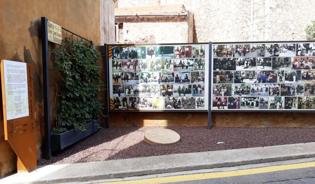 El 2013, en aquest espai, s’hi van instal·lar uns plafons amb un seguit de fotos de la representació de la sembra de pinyons, des del 1940 fins a l’actualitat. La inauguració va tenir lloc el 17 de maig. Veient que les fotos eren d’interès per a les persones que visiten ocasionalment el poble, per la festa de Sant Isidre de 2018 l’espai es va complementar amb un plafó explicatiu.