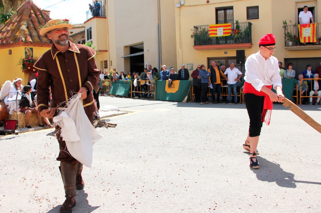 El 1882 el cronista de la publicació «La Unión» ens explica que a les vuit del matí es farà una cercavila acompanyant una carreta que repartirà pinyons als veïns i el 1893, una nota publicada a La Vanguardia ens descriu una festa semblant a l’actual: … un gayán simula arar el espacio que coge la plaza mayor del pueblo, a medida que otro, vestido de santo, va delante sembrando piñones, con gran contento de los chiquillos…». Una altra nota de La Vanguardia de l’any 1928 ens parla de la Societat «Caridad y Recreo» com a organitzadora de la festa i dóna a conèixer el repartiment dels personatges de la representació: Josep Terrats, actuant com a Sant Isidre; Teresita Planella, de rebostera i Joan Tuèbols i Joan Pellicer fent de mossos.