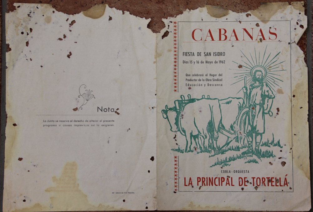 Conté: Cabanes (programa Festa de Sant Vicenç 1929, 2 cartells festa major Sant Vicenç 1944, programa, cartells i programa de mà de la Festa de Sant Isidre 1946, programa partit futbol Viejas Glorias contra Juventud la Flor, [194-?], programa de mà Festa de Sant Vicenç 1947, programa de mà partit futbol 1943.