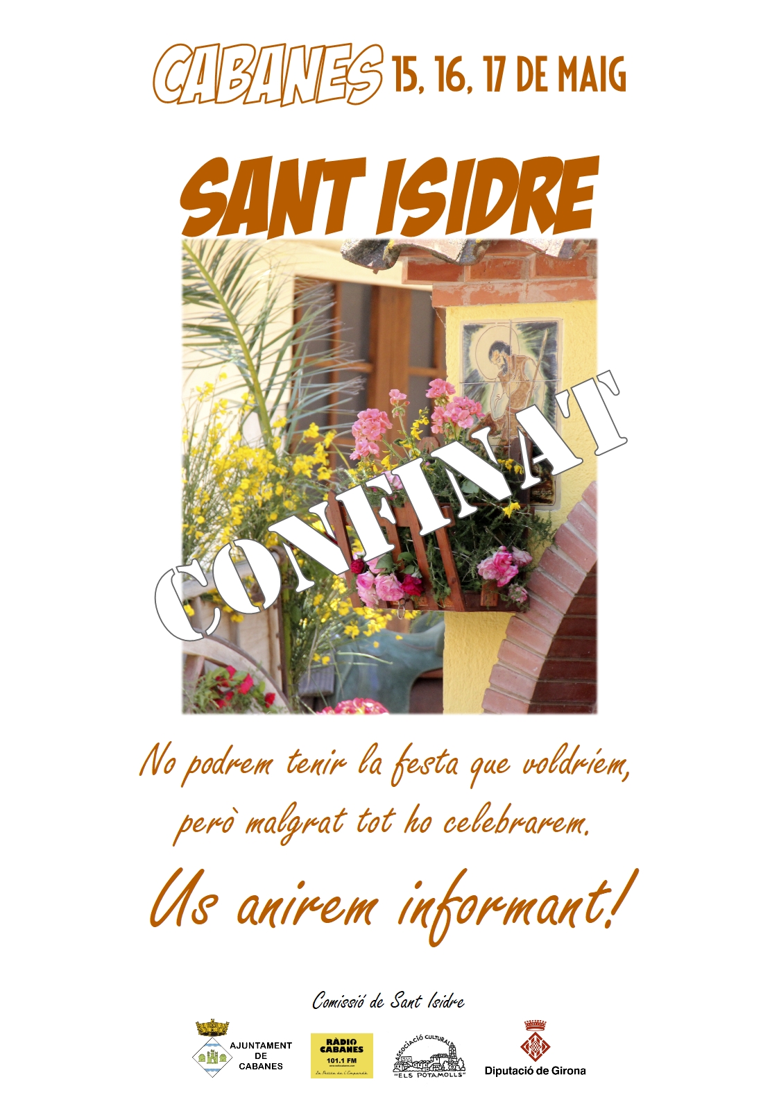 La festa de Sant Isidre del 2020 ha caigut en ple confinament per la COVID-19 i no s’han pogut portar a terme ni la representació de la Sembra de pinyons ni cap altra de les activitats pròpies de la festa, tot i això, s’han preparat un seguit d’activitats per seguir des de casa organitzades per la Comissió de Sant Isidre, Potamolls, Ràdio Cabanes, l’Escola de Cabanes i el propi l’Ajuntament.