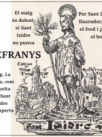 Refranyer: Quan sant Isidre és arribat / tot el blat ja és igualat — Per sant Isidre / el blat comença a treure espiga — Per sant Isidre el melonar / ni nascut ni per sembrar — Sant Isidre, favater, / roba faves qui no en té — Sant Isidre llaurador / s’emporta la pluja’/ i porta el sol.