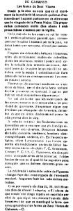 Joaquim Gimbernat en un treball escolar, titolat Carnaval en Cabanas – 1930, ens descriu la festa d’aquell any: El dia 2 de marzo se celebro en Cabanas el Carnaval, y todos los 3 dias hubo musicos. Y los primeros dia llovió, y habia hombres que hacián reir mucho, los dos primeros dias habia pocos disfraces. El ultimo dia no llovio y hubo bayle todos los dias, y por la noche hubo muchos disfraces que hacen reir mucho, pero nosotros tuvimos que ir a clase todos los dias, pues este año no hemos hecho ningun dia de vacación.