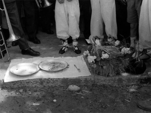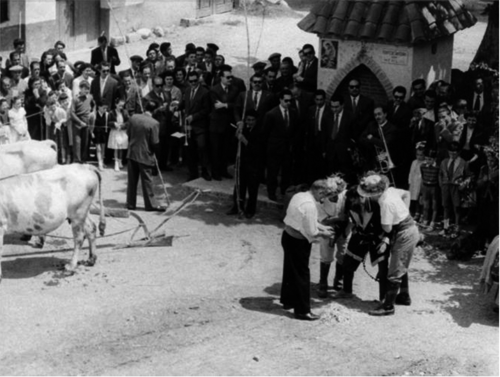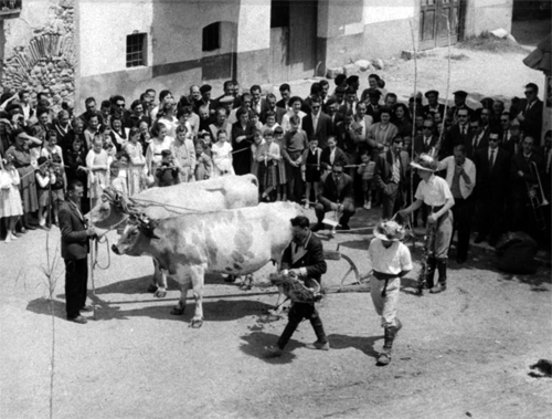 Al punt del migdia del dimecres 15 de maig de 1957, sota un sol primaveral, tot Cabanes era a la plaça per gaudir d’una nova representació de la «Sembra de pinyons».